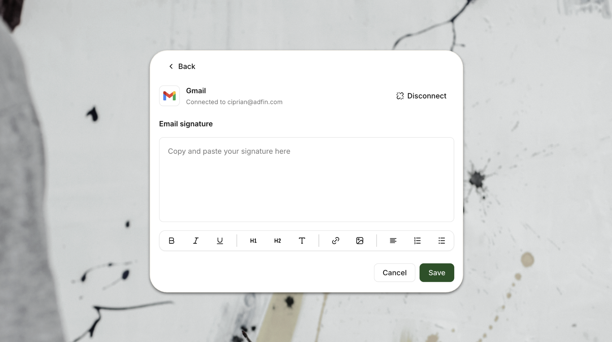 Just copy and paste your full signature and we’ll keep the formatting intact — including links and images. It works across Autopilot emails, so your invoices and reminders look consistent and professional.